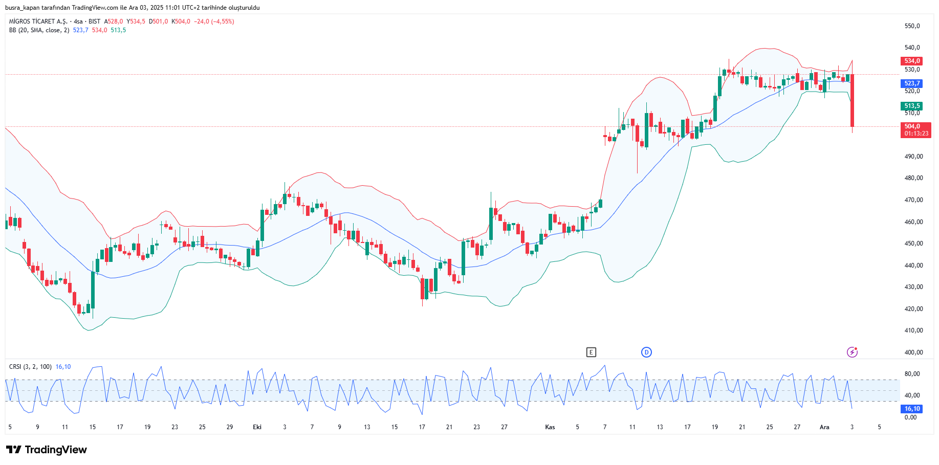 Borsa İstanbul’da işlem gören Migros (MGROS) hisselerinde yüzde 5’e yakın kayıp yaşayarak 501,00 liraya geriledi. Düşüşlerin ardından sürekli işleme ara verildi. Tek fiyat emir toplama başladı.