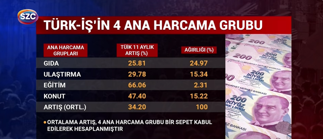 Sözcü ekonomi muhabiri Erdoğan Süzer, olası zam senaryoları ve bunların Türk-İş’in açıkladığı “açlık sınırı”nın karşısındaki yetersizliğine vurgu yaptı.
